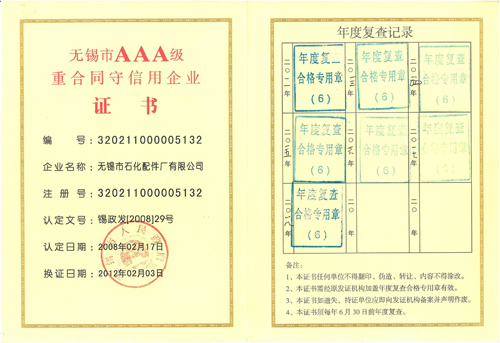 無(wú)錫市3A級(jí)重合同守信用企業(yè)證書(shū)