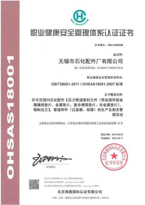 職業(yè)健康安全管理體系認(rèn)證證書